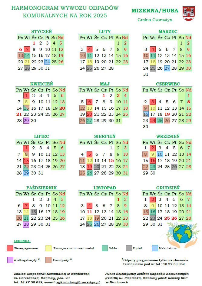 Harmonogram wywozu odpadów komunalnych na terenie Gminy Czorsztyn