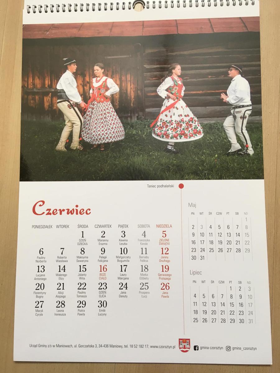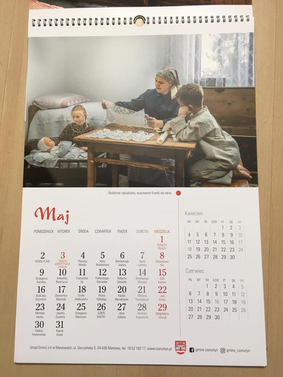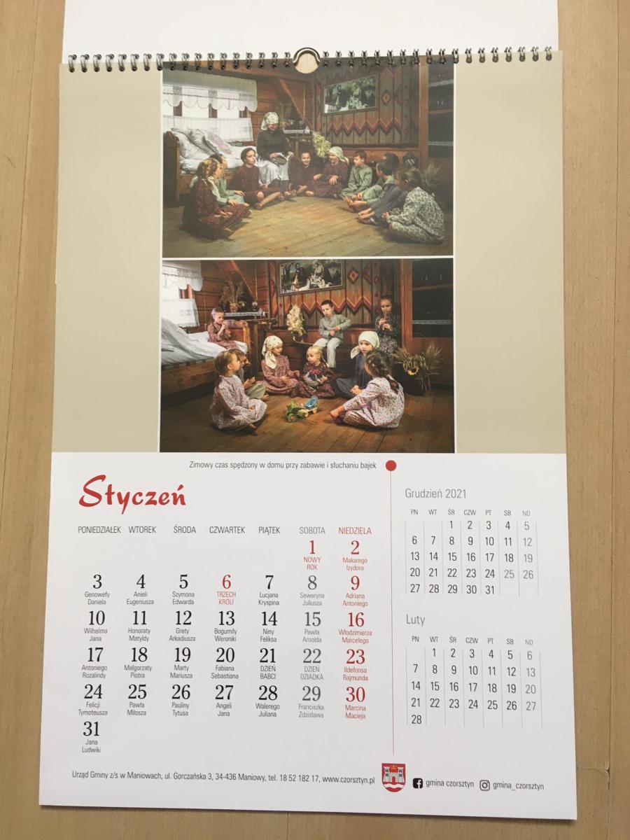 Kalendarze Gminy Czorsztyn na rok 2022 zostały wydane i są dostępne przy wejściu głównym do Urzędu Gminy od dnia 8 grudnia 2021 r. Zdjęcia do kalendarza zostały wykonane w ramach realizacji projektu „Maniowska skrzynia wspomnień”.Zachowanie tożsamości regionalnej poprzez ukazanie historii wioski oraz ewaluacji strojów góralskich oraz warsztaty szycia i filcu dla mieszkańców Gminy Czorsztyn.