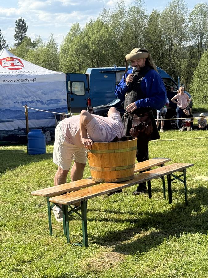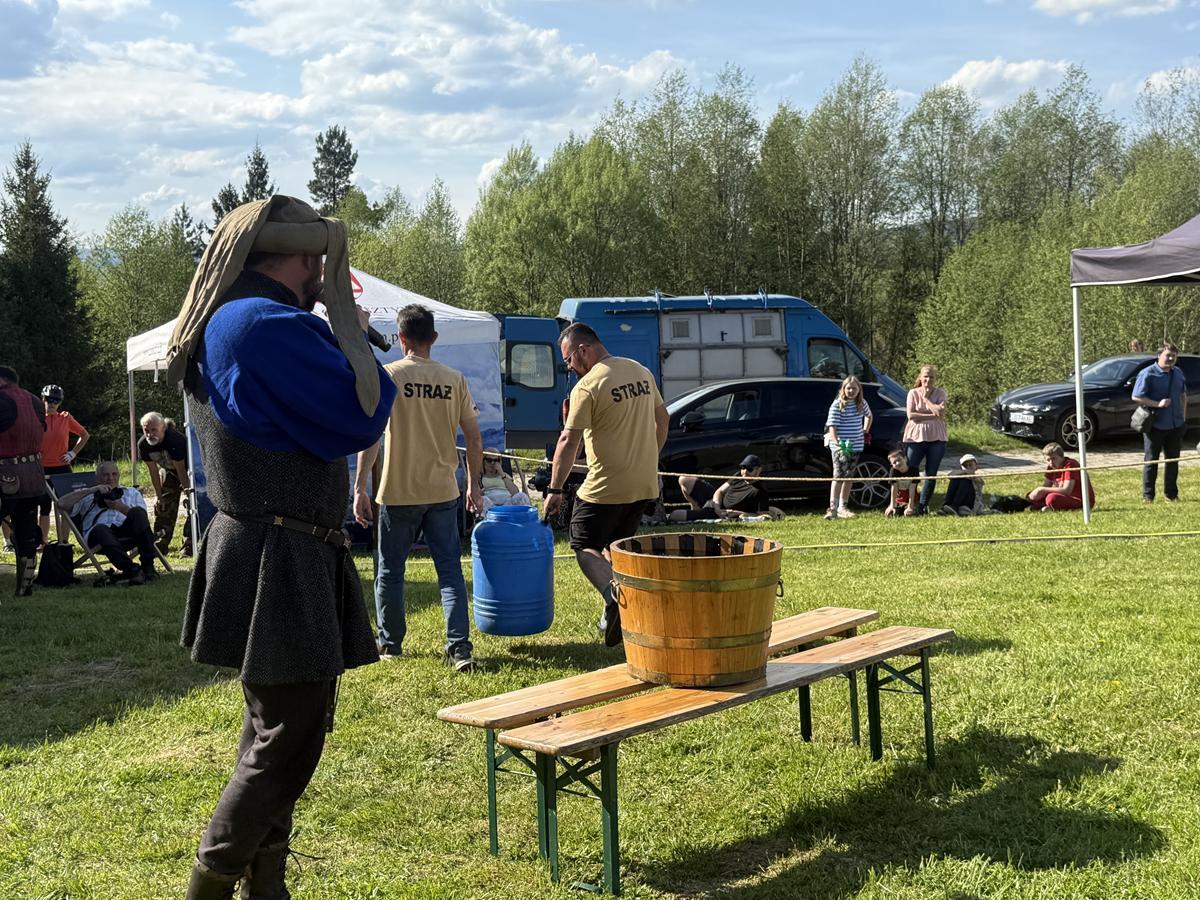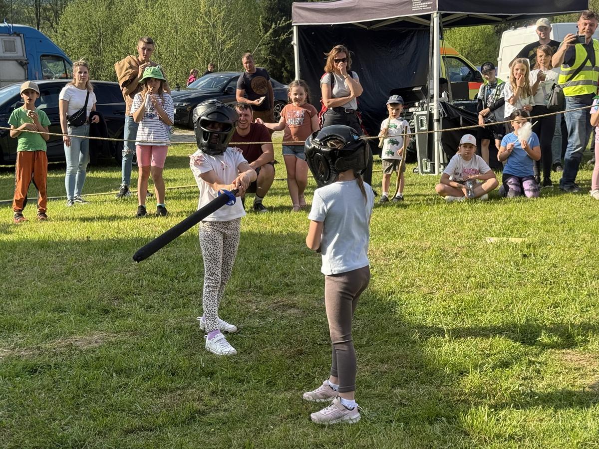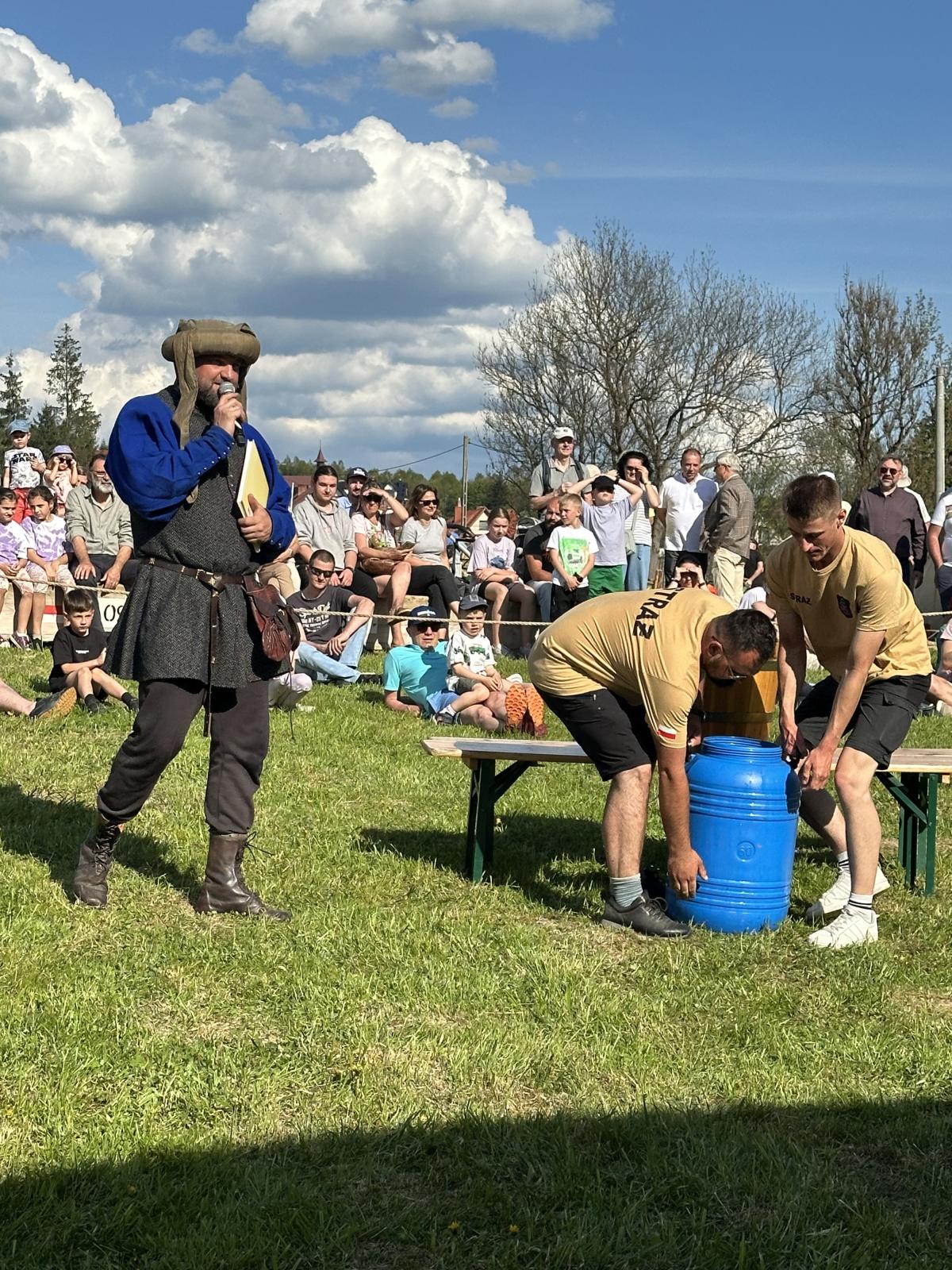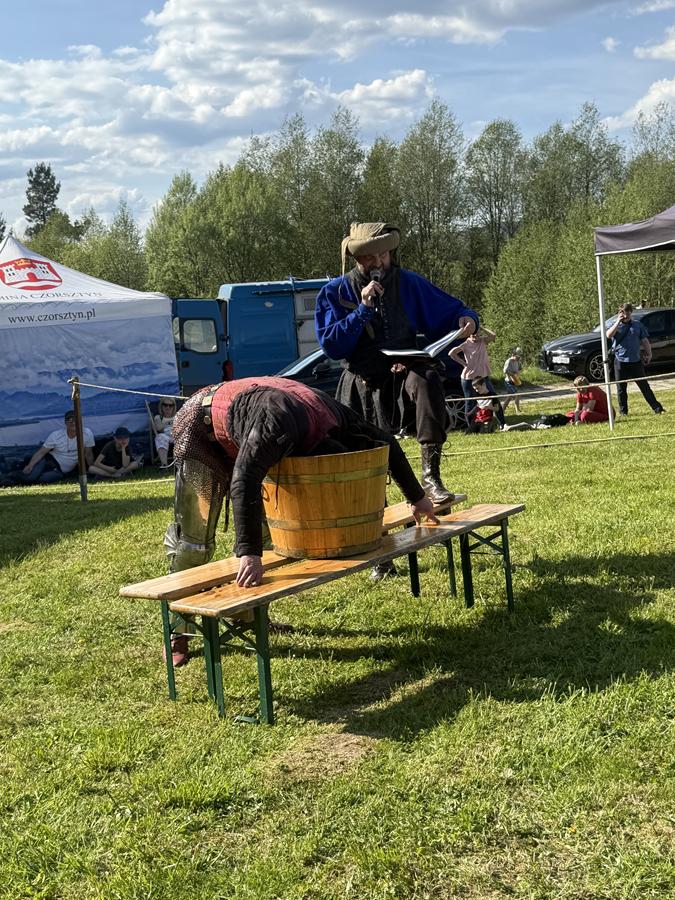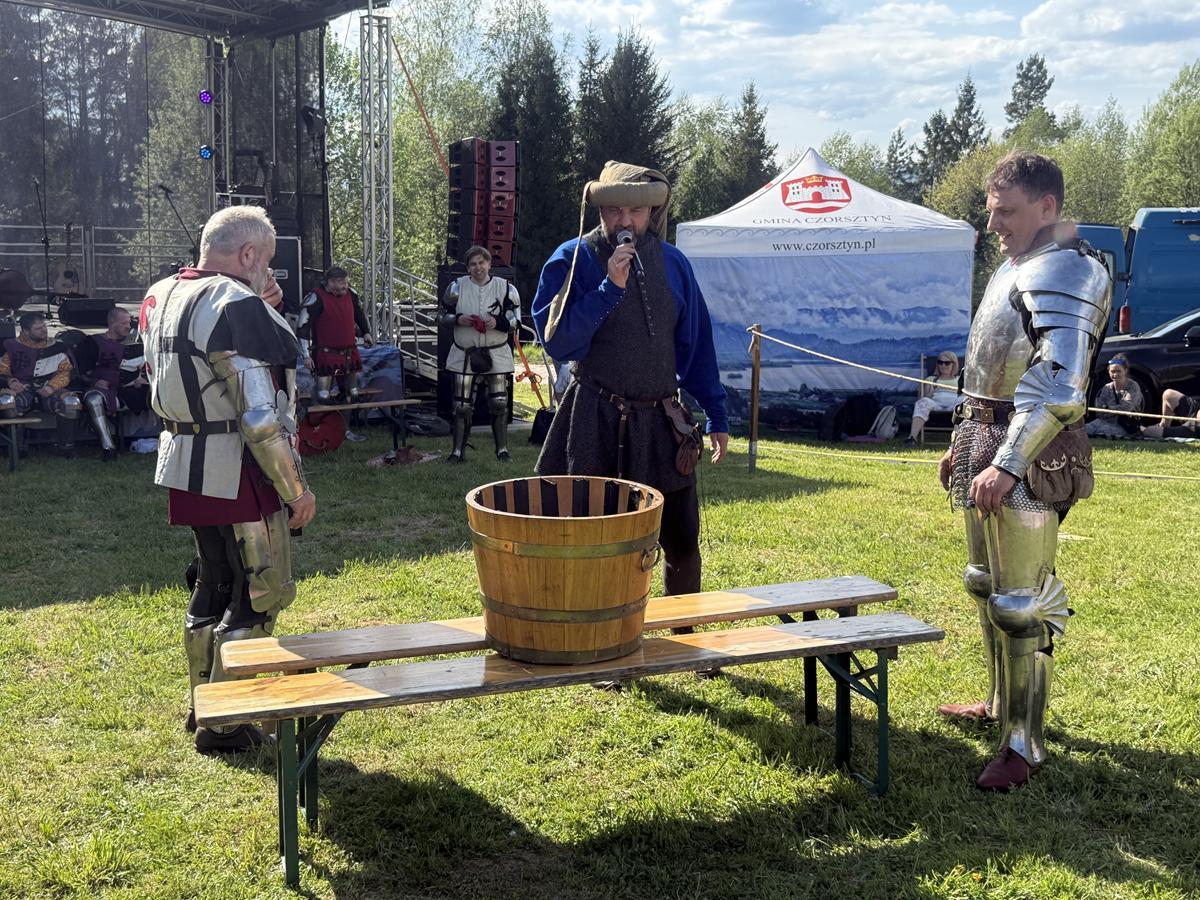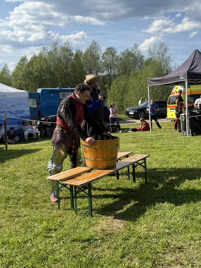 Nie zabrakło humoru – sporo emocji przyniósł konkurs „maczania łba w bali”, w którym odważni uczestnicy rywalizowali z rycerzami o najlepszy czas. W wielu przypadkach to właśnie uczestnicy wydarzenia okazali się szybsi niż rycerze!