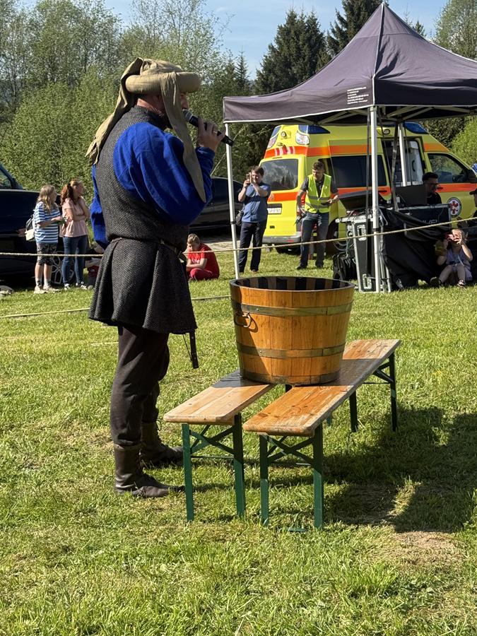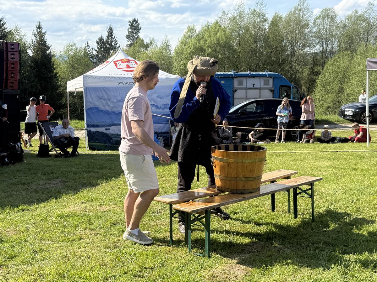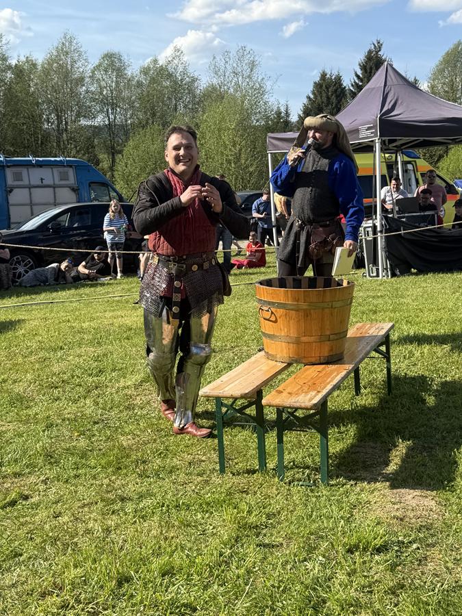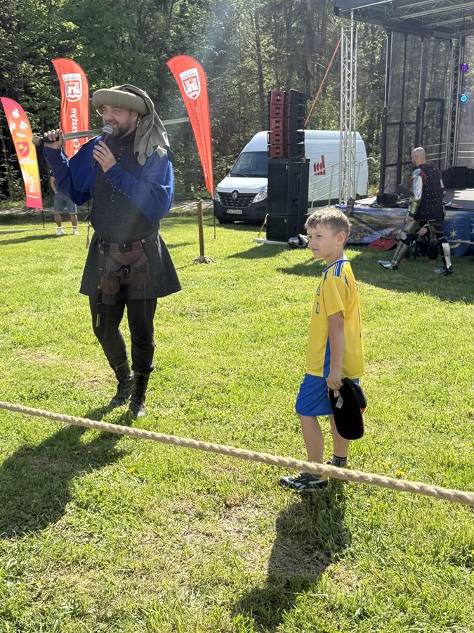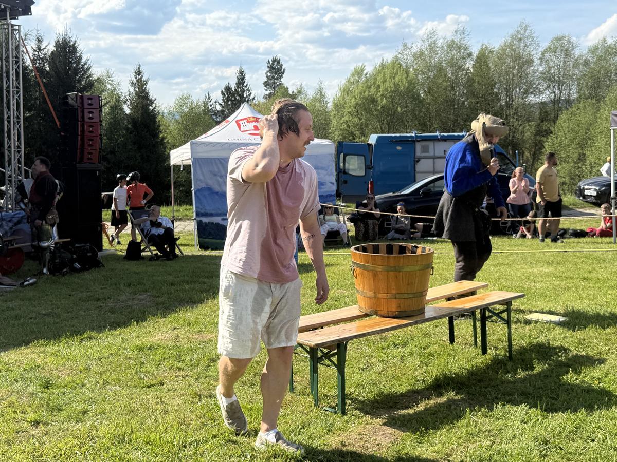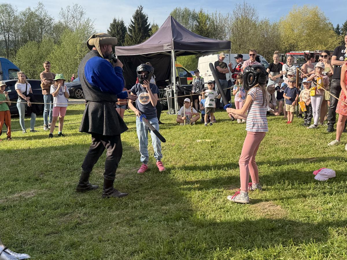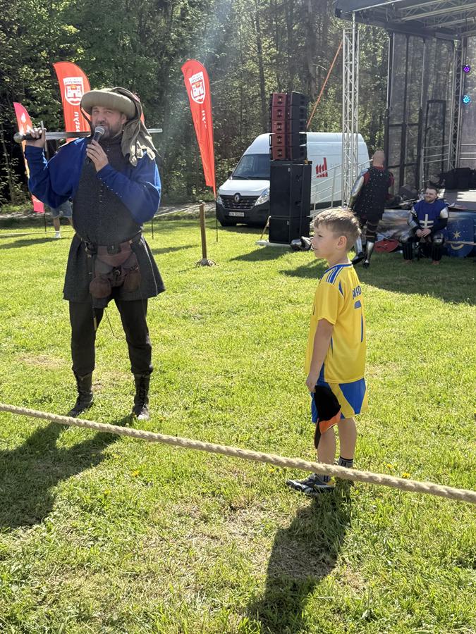 Nie zabrakło humoru – sporo emocji przyniósł konkurs „maczania łba w bali”, w którym odważni uczestnicy rywalizowali z rycerzami o najlepszy czas. W wielu przypadkach to właśnie uczestnicy wydarzenia okazali się szybsi niż rycerze!
