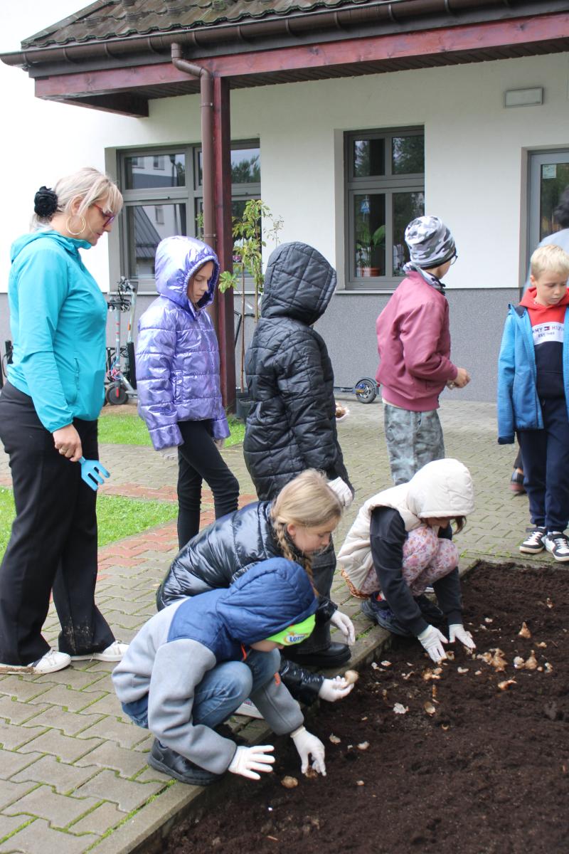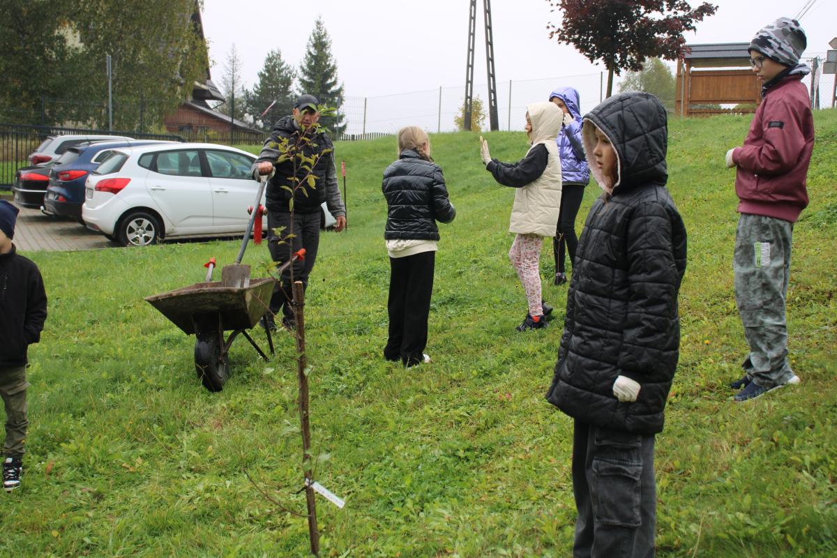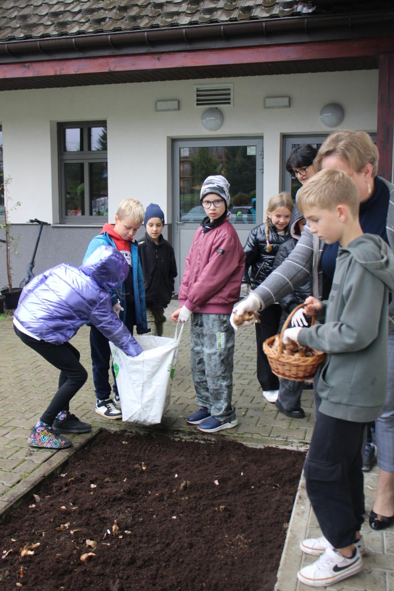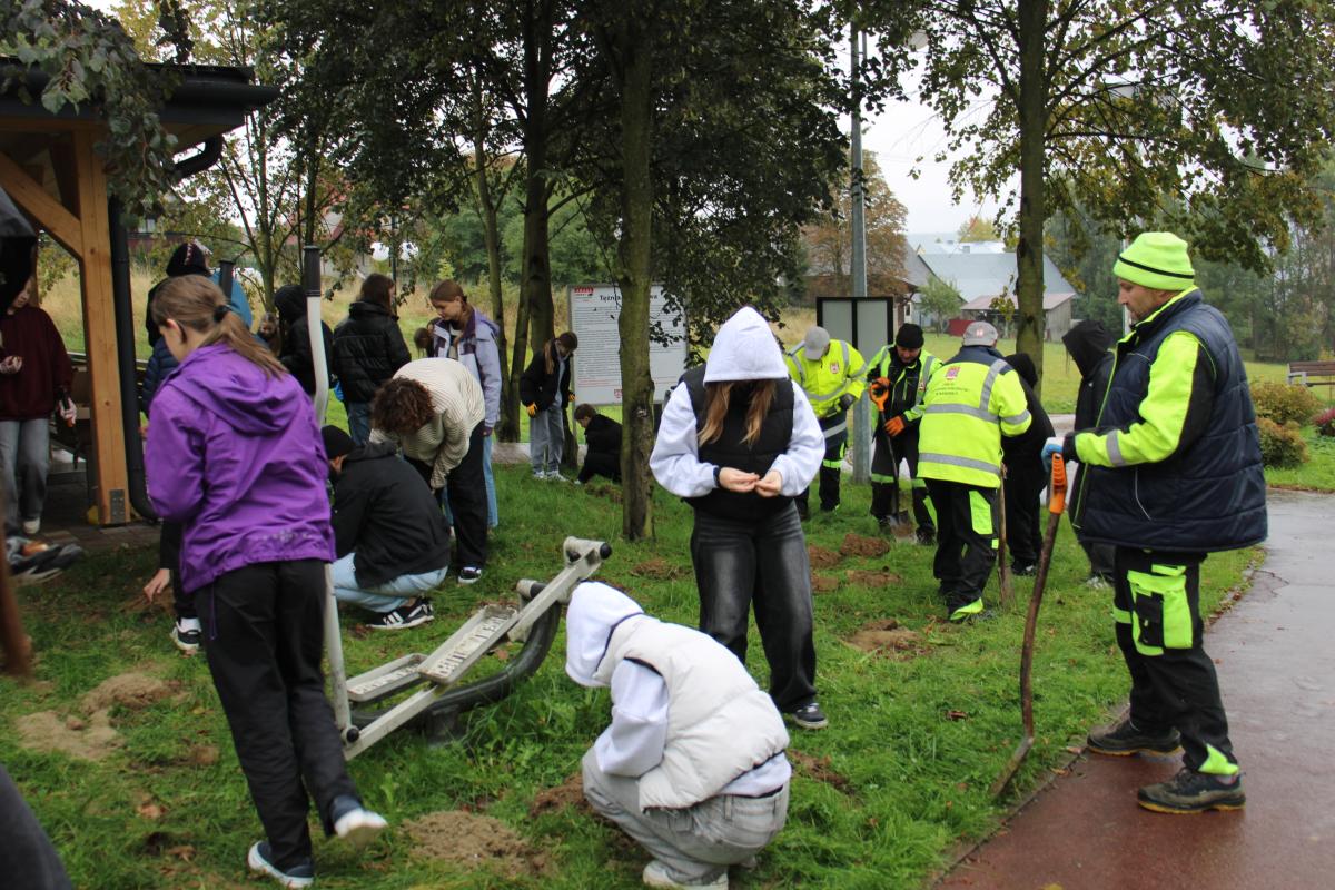 10 października 2025 roku rozpoczęliśmy realizację działań praktycznych w ramach projektu „Otwórz oczy na zielone! Od projektu do efektu”. Pierwszym etapem było wspólne obsadzenie placu sportowo-rekreacyjnego w Dolince Micholowskiej krokusami wraz z uczniami Szkoły Podstawowej im. Władysława Orkana w Maniowach. Następnie, wspólnie z uczniami Zespołu Szkolno-Przedszkolnego w Kluszkowcach, posadziliśmy drzewka, a dzieci pomogły także w upiększeniu terenu przy Gminnej Bibliotece Publicznej w Kluszkowcach.