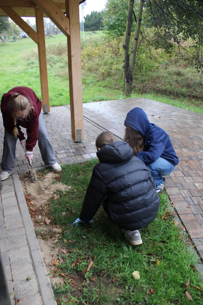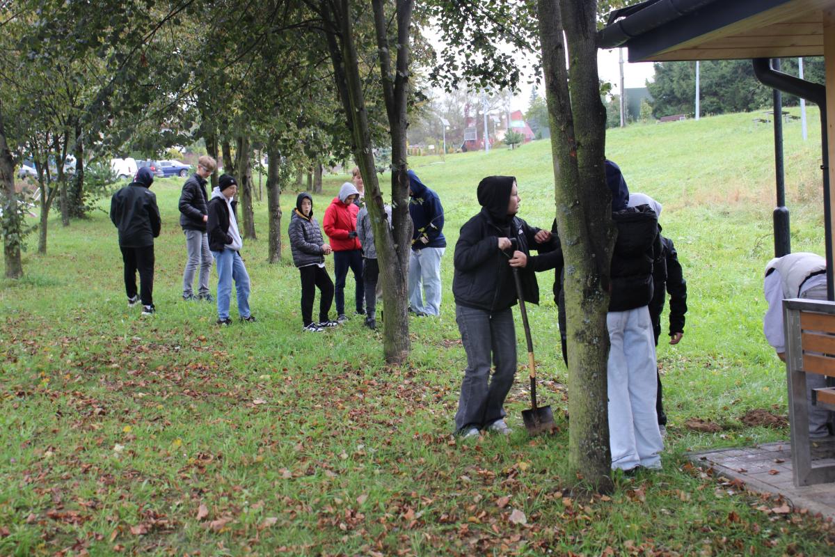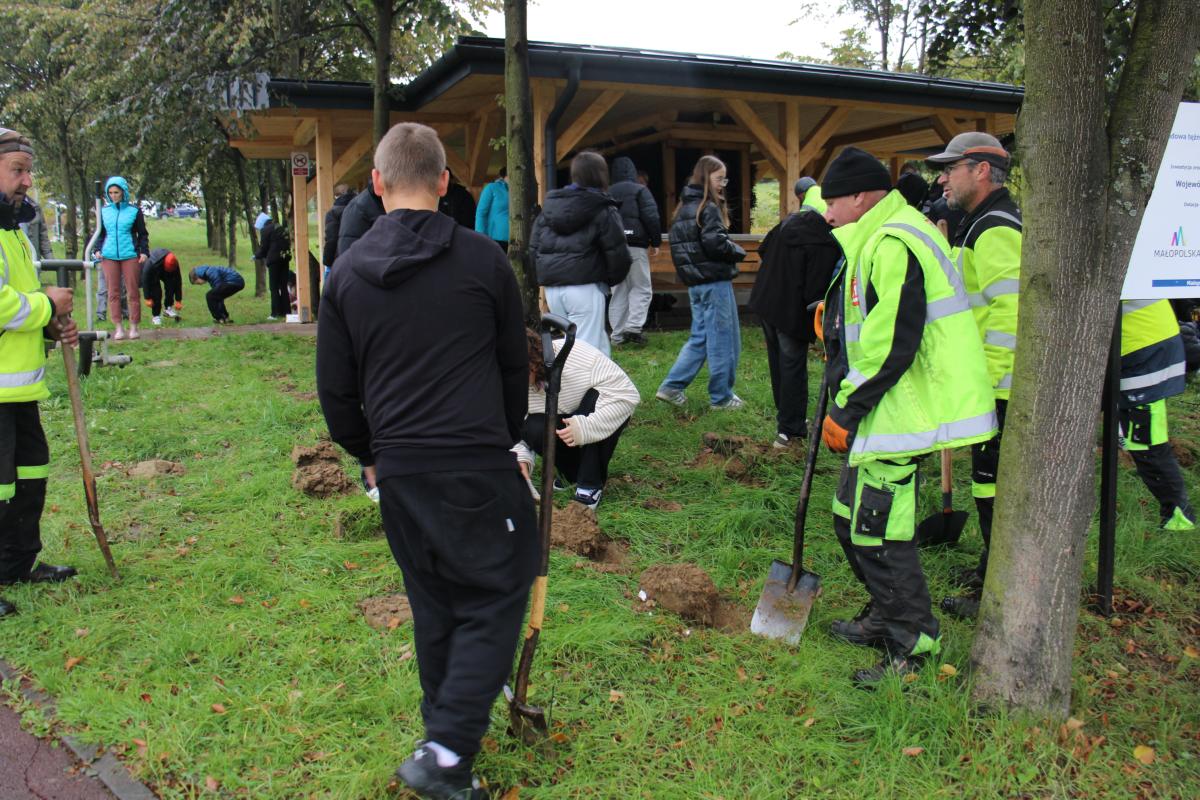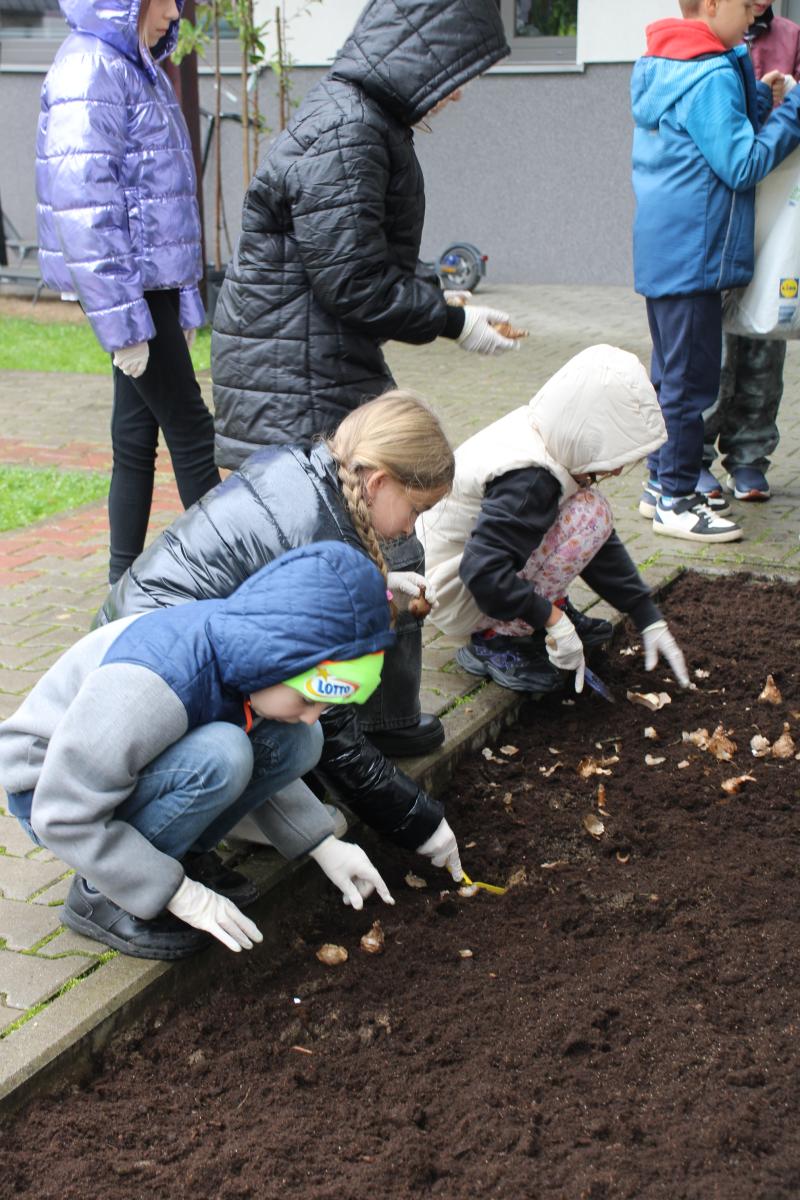 10 października 2025 roku rozpoczęliśmy realizację działań praktycznych w ramach projektu „Otwórz oczy na zielone! Od projektu do efektu”. Pierwszym etapem było wspólne obsadzenie placu sportowo-rekreacyjnego w Dolince Micholowskiej krokusami wraz z uczniami Szkoły Podstawowej im. Władysława Orkana w Maniowach. Następnie, wspólnie z uczniami Zespołu Szkolno-Przedszkolnego w Kluszkowcach, posadziliśmy drzewka, a dzieci pomogły także w upiększeniu terenu przy Gminnej Bibliotece Publicznej w Kluszkowcach.