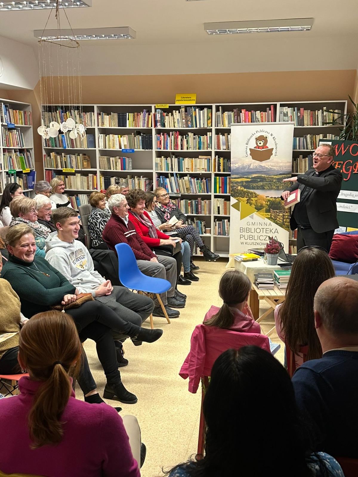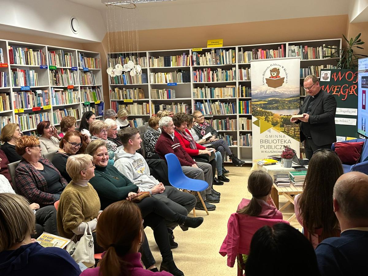 27 października 2025 r. w Gminnej Bibliotece Publicznej w Kluszkowcach odbyło się wyjątkowe spotkanie z ks. Wojciechem Węgrzyniakiem – prezbiterem archidiecezji krakowskiej, rekolekcjonistą, doktorem habilitowanym nauk teologicznych i biblistą, pochodzącym z Mizernej.