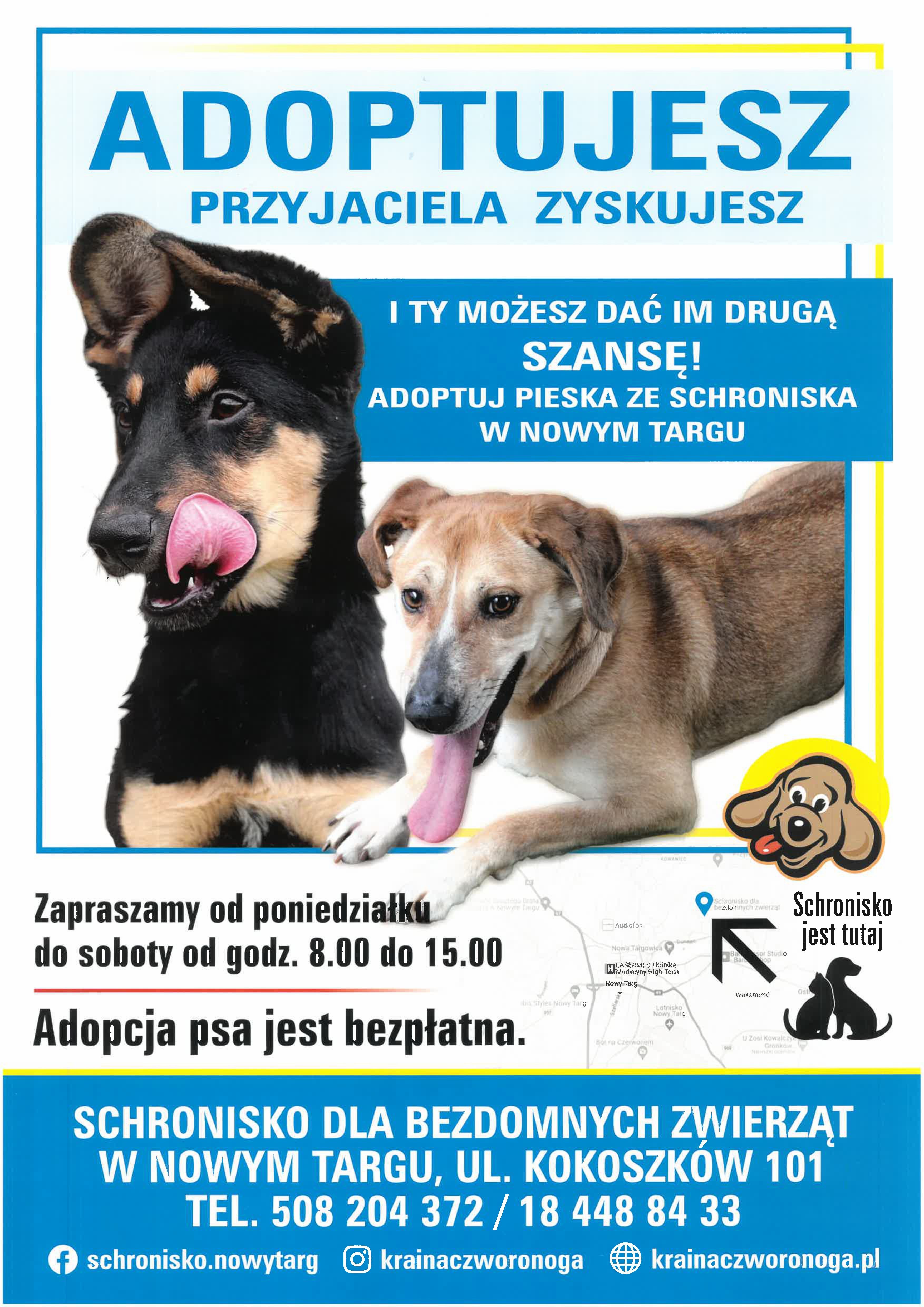 Schronisko dla Bezdomnych Zwierząt w Nowym Targu zachęca do adopcji psów, które czekają na odpowiedzialnych i troskliwych opiekunów. Każde zwierzę przebywające w schronisku marzy o bezpiecznym domu oraz bliskości człowieka. Adopcja to nie tylko ogromna pomoc dla bezdomnego psa, ale również możliwość zyskania oddanego przyjaciela.