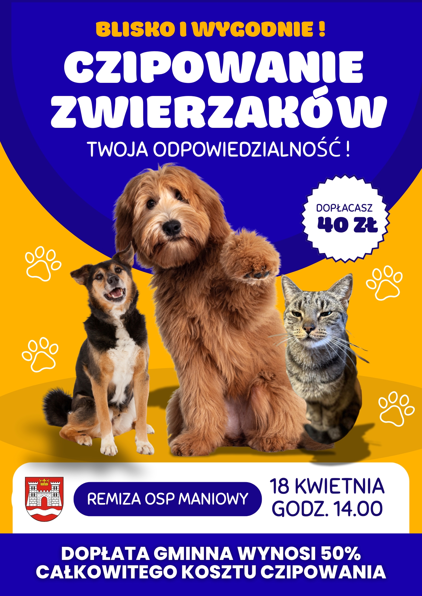 Mieszkańcu, zadbaj o bezpieczeństwo swojego czworonoga bez konieczności wyprawy do lecznicy. Zapraszamy na specjalną akcję znakowania zwierząt, która odbędzie się bezpośrednio w Twojej okolicy!