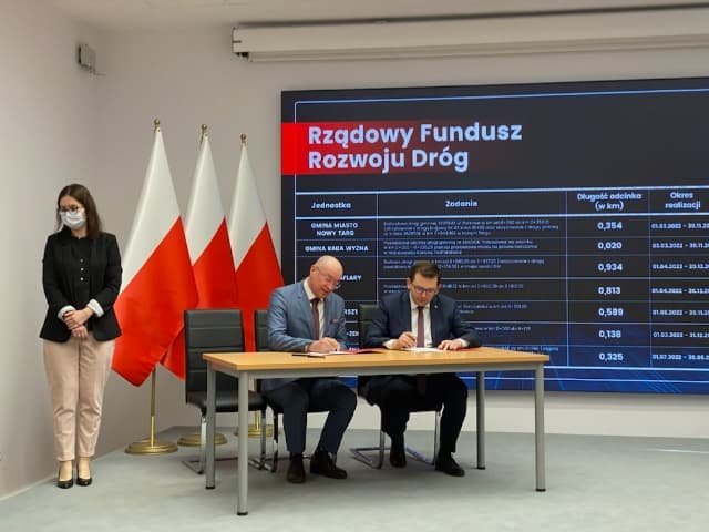 W dniu dzisiejszym tj. 24 marca 2022 r. Wójt Gminy Czorsztyn Tadeusz Wach podpisał z Wojewodą Małopolski Łukaszem Kmitą umowę potwierdzającą dofinansowanie na przebudowę drogi gminnej ul. Gorczańskiej w km od 0+501,00 do km 1+089,50 w miejscowości Kluszkowce. Wartość dofinansowania z Rządowego Funduszu Rozwoju Dróg dla Gminy Czorsztyn wynosi aż 1 112 187,00 zł.