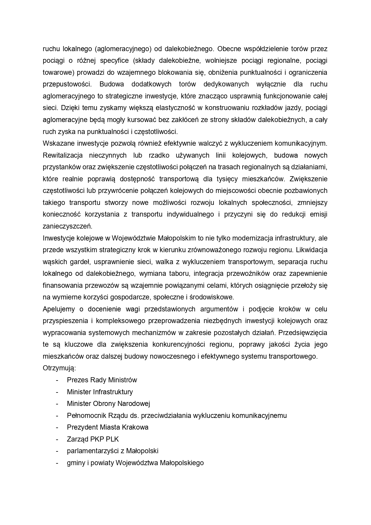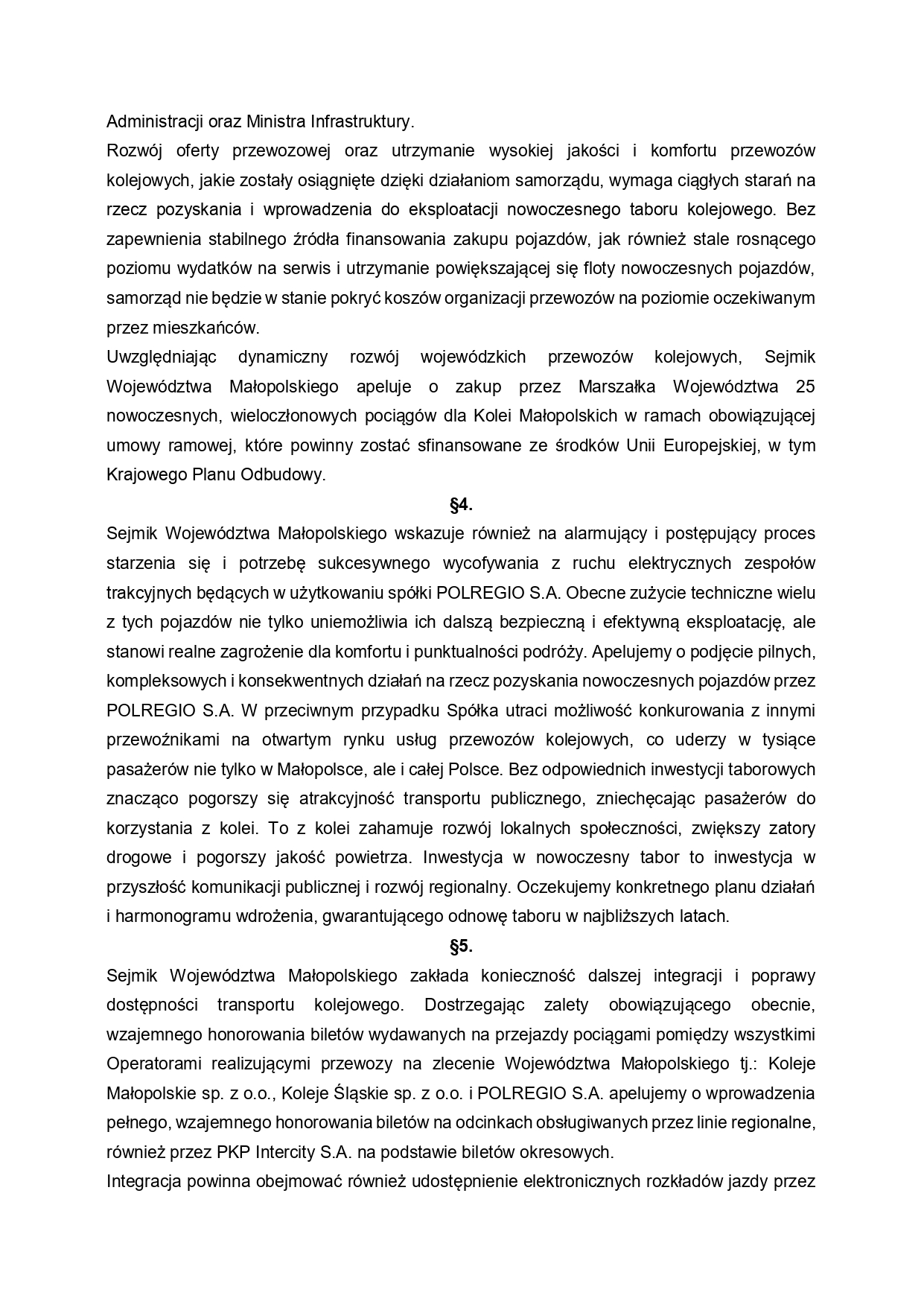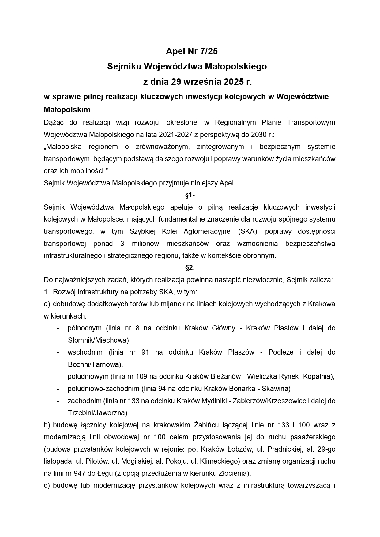 Apel Nr 7/25 Sejmiku Województwa Małopolskiego z dnia 29 września 2025 r. w sprawie pilnej realizacji kluczowych inwestycji kolejowych w Województwie Małopolskim 07.10.2025 8:21 Treść Facebook Twitter Email Drukuj