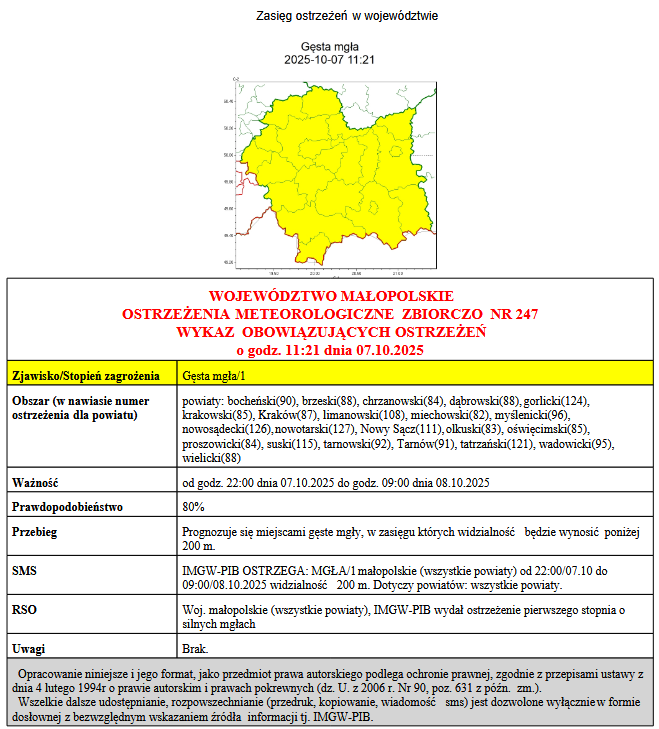 Ogłoszenie meteorologiczne nr 247 07.10.2025 11:52 Treść Ogłoszenie meteorologiczne nr 247 Facebook Twitter Email Drukuj