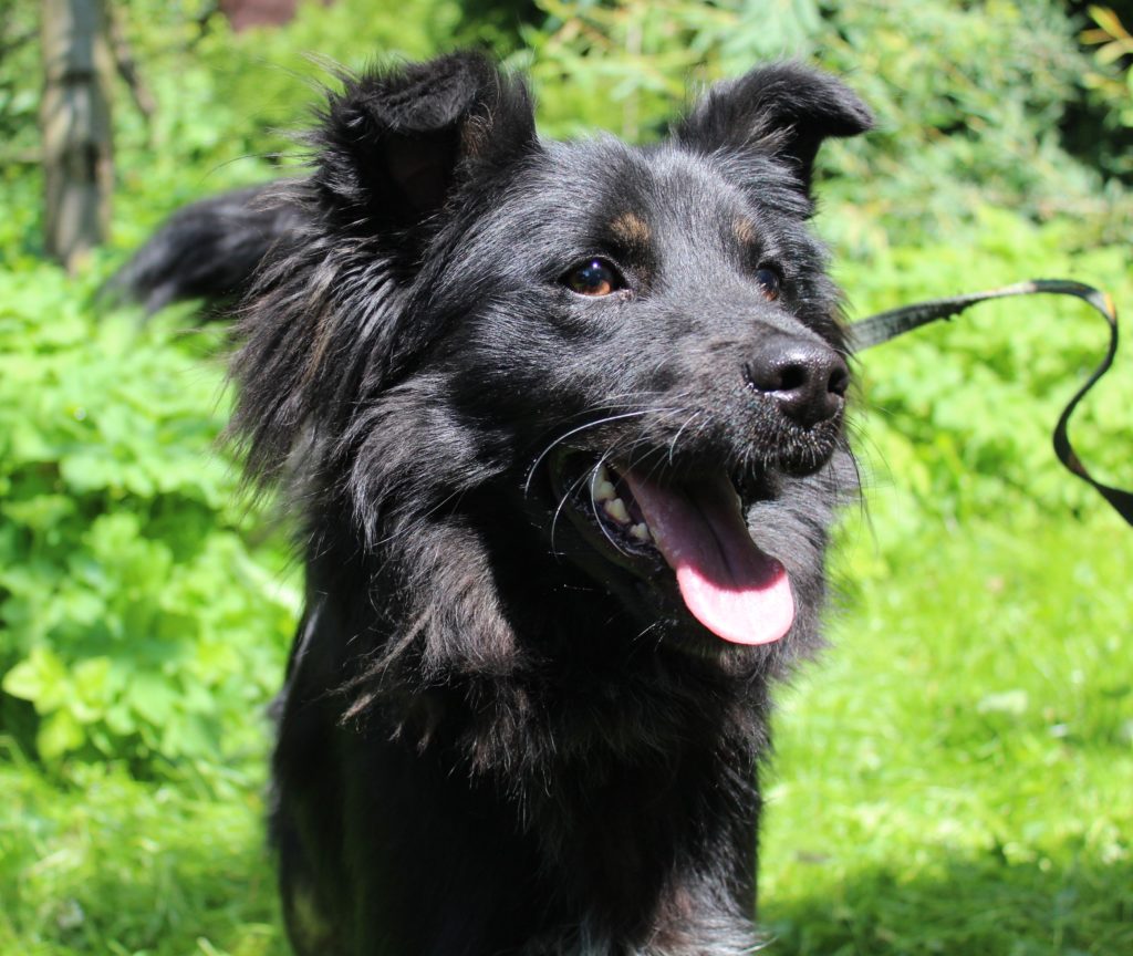 (Pies, średni, czarny, podpalany, kudłaty, 2,5 roku)