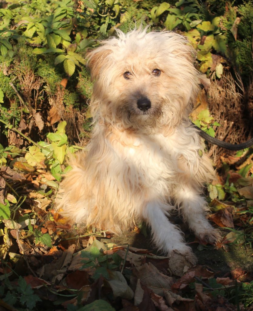 Pies, mały, beżowo-kremowy, szorstkowłosy, 9 lat